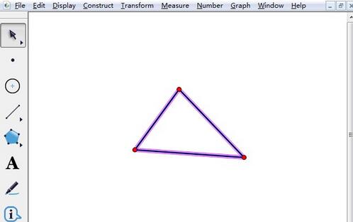 这是单击上方菜单栏“构造”菜单,在其下拉菜单选择“线段”命令,绘制出如下图所示的三角形。