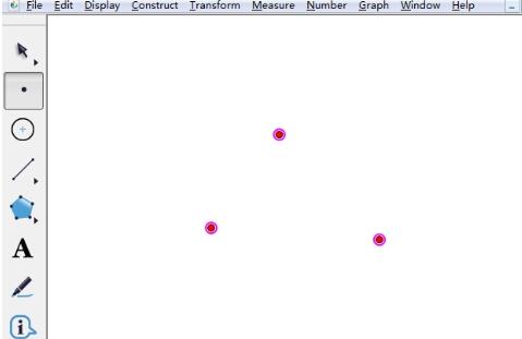 打开几何画板,单击左边侧边栏“点工具”,按住“Shift”键在画布上面绘制不在同一直线上的三个点作为三角形的顶点。