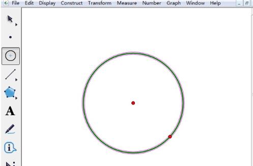 绘制圆。要使圆的一部分用虚线表示,那就需要先构造圆。打开几何画板,在左侧工具栏,有现成的“圆工具”,该工具代替了传统的圆规,可以用它来画圆。选择好“圆工具”,在画板上点击一下确定圆心位置,拖动鼠标确定圆的大小再次单击鼠标,就能画出圆。