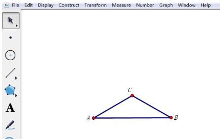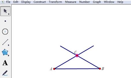 确定三角形的顶点C。用移动工具选中旋转得到的两条边,执行“构造”——“交点”命令,这样就标出了交点C。