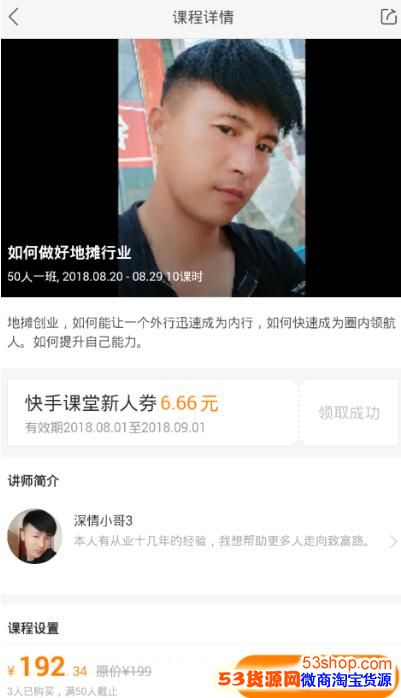 3、如此一来,用户们点击进入快手的课堂页面,就能够通过右下角的按钮来购买课程视频进行学习了。