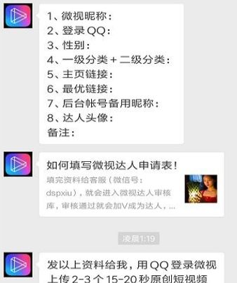 通过之后客服就会给你微视达人的申请模板,按照模板填写信息就能够注册成为达人了!