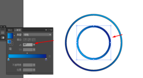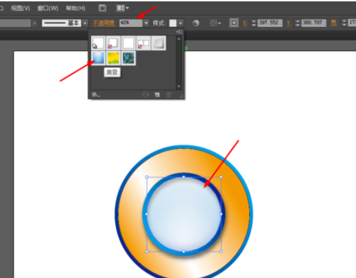 点击圆形右键取消编组,给边缘添加渐变颜色,如图所示