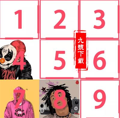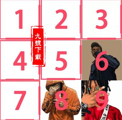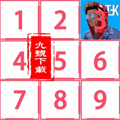 第4张:8张拼图+1张白图拼图排在第1、2、3、4、5、6、8、9位,7位放白图;