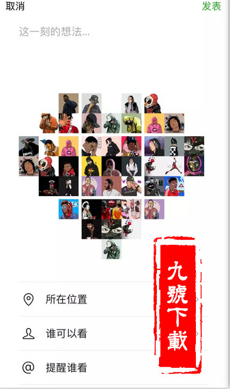 9张拼图都制作完成后,按照排列顺序发布朋友圈,就可以呈现心形效果了。