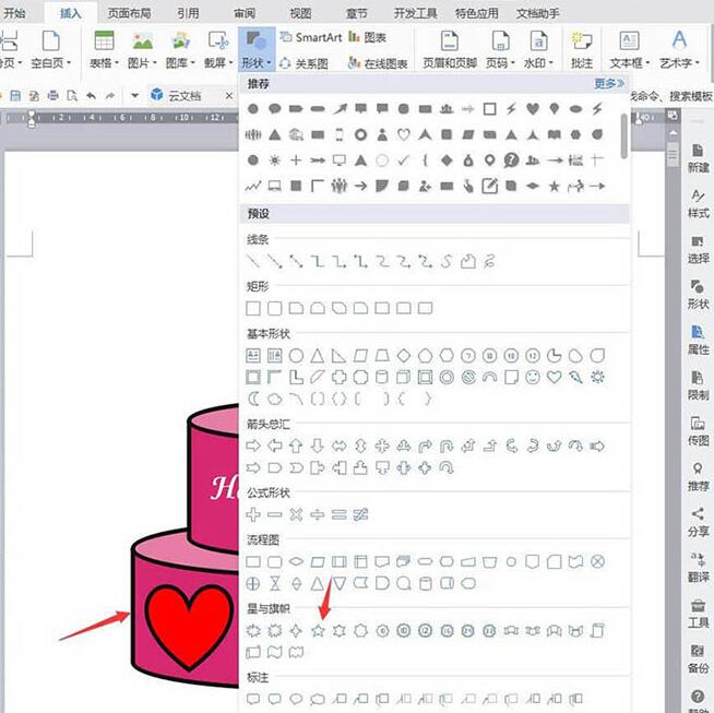 wps绘制一个双层生日蛋糕的操作方法