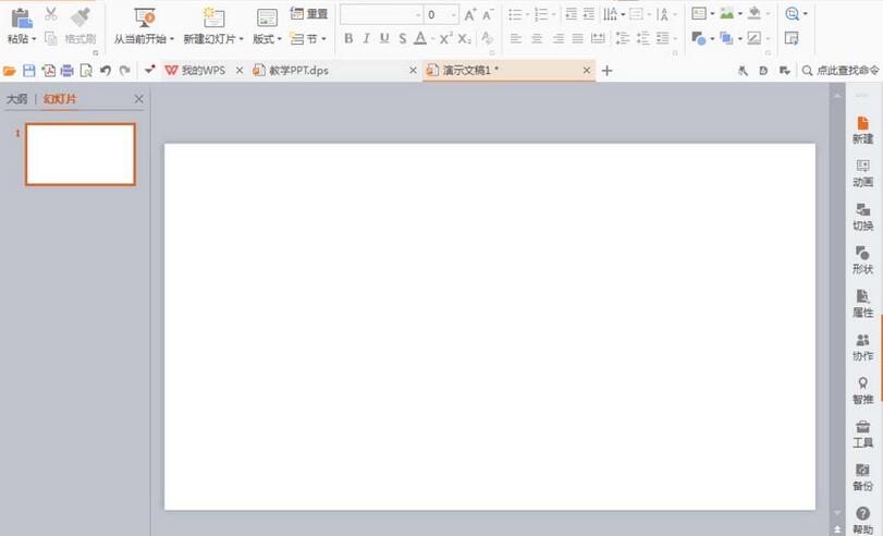 2、删掉后,空白文档如图所示。在空白文档左侧,鼠标右键,新建幻灯片母版,或是再次新建空白幻灯片都可以。