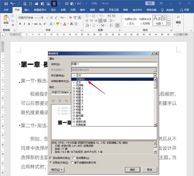 8、点开样式基准,选择无样式。