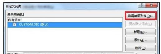 5、在自定义词典对话框中,点击右侧的“编辑单词列表”。