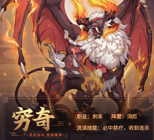 穷奇:对于外形的描述,可能就会有多个不同的分类,有人会说外形是比较可怕的。但也有人会说,如果从外形上来看会有一些可爱,就好像是宠物一样。但不可否认的就是,这是一个相对比较强悍的异兽。觅血寻踪对于生命最低的敌方单位就可以形成242%的伤害,并且在持续的两个回合内都会有效果。狩猎时刻对于生命值较低的敌方成员可以造成40%的伤害。敌方场上存活的目标越多,那所造成的技能伤害系数也就越高。