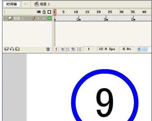 首先,进入FLASH利用画圆工具绘制一个钟表的外框,然后在内侧写入数字,根据倒计时的要求调整时间的长短,这里设置为10秒。