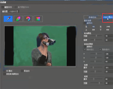 4、为精确抠像范围,可以打开右边的详细设置进行精确调整抠像的范围。