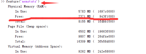 接着我们还可以通过memory函数查看系统的内存,如图所示: