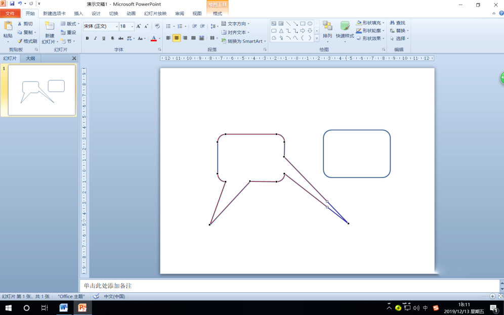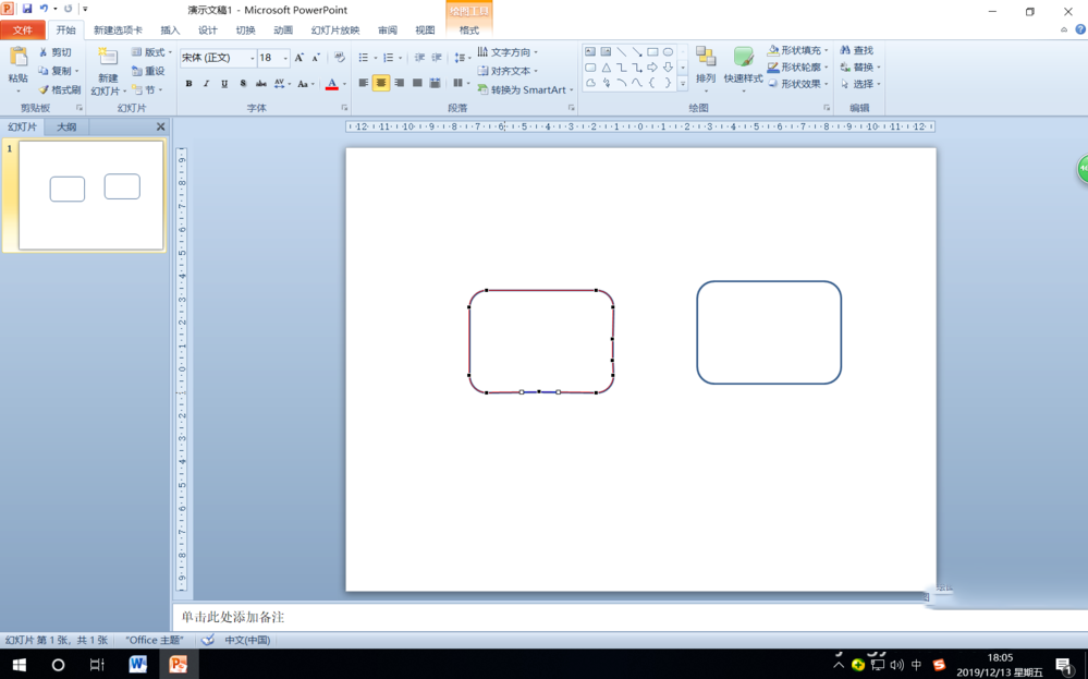 第二步:在打开的下拉菜单中选择“矩形”中的“圆角矩形”,然后在幻灯片窗格绘制一个圆角矩形。