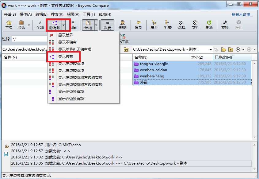 Beyond Compare导出独有文件的操作步骤