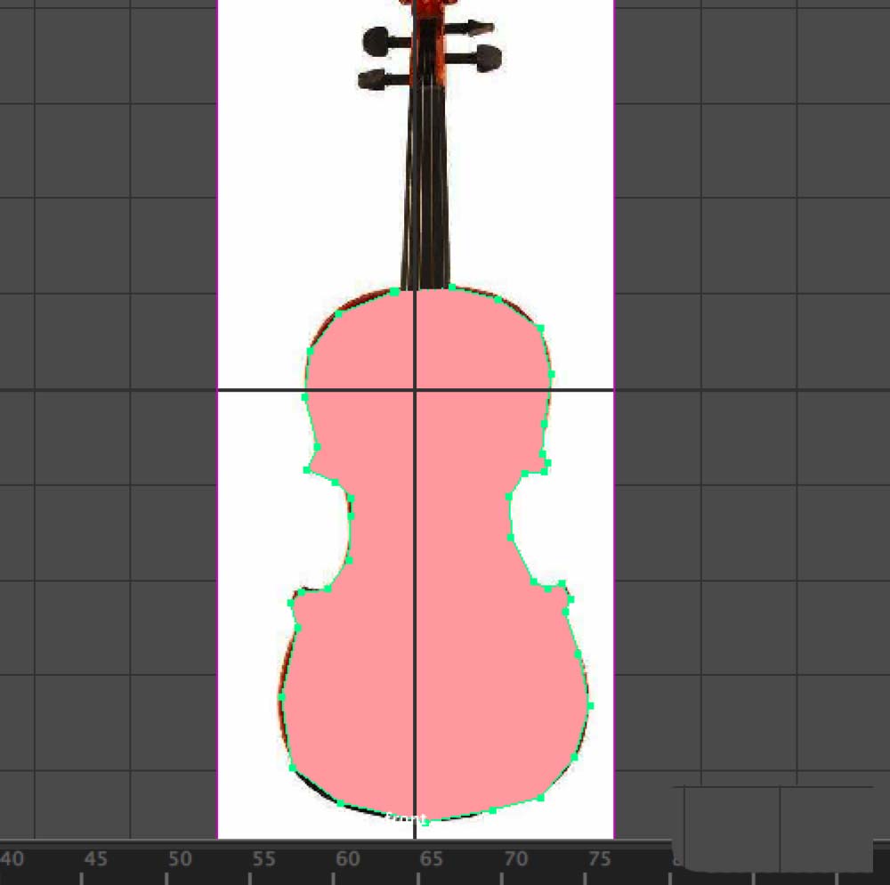 3、这时鼠标光标变成十字形。沿小提琴主体外形轮廓进行描绘,描绘至最后一个点,按下“W”键跳出绘制多边形模式。这时会得到一个多边形面片。