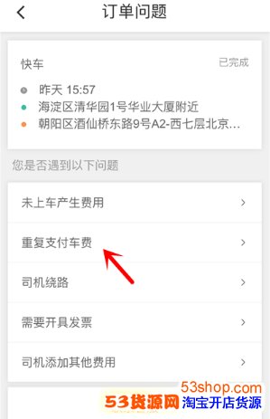 针对该行程,选择一个你需要投诉的问题,当然最好是常见的问题,因为毕竟是在线投诉。
