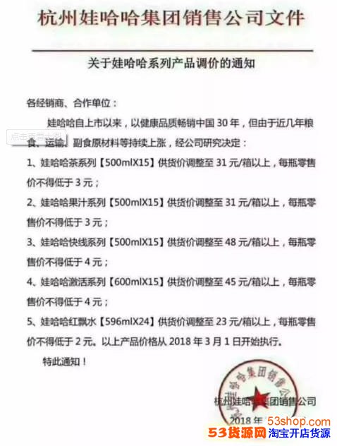 2018年伊始,食品饮料行业已经历了一波涨价潮,难道娃哈哈也要加入涨价阵营了吗然而,2月26日记者致电娃哈哈集团,宣传部负责人向记者表示,该份文件是伪造的,首先公司没有这样公章,其次文件的表述不准确。