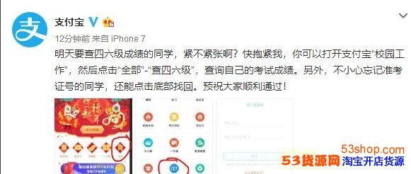 3.支付宝新增查询四六级成绩功能 今天上午9:00开启