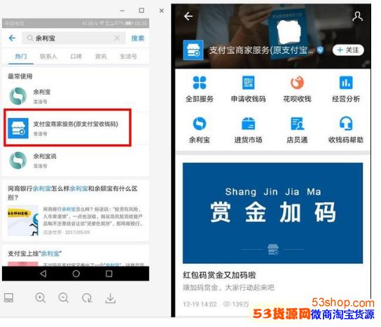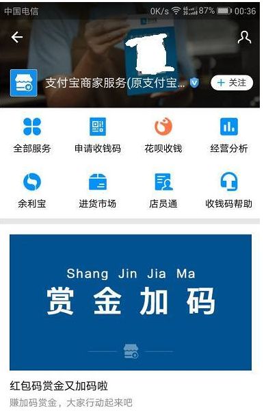 这个时候不要盲目点击,应该点击下方的“支付宝商家服务(原支付宝收钱码),就然后就进入到右边这个界面了。