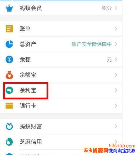 然后点击‘余利宝’再把钱转入就可以在支付宝下方”我的“里面看到了,如图: