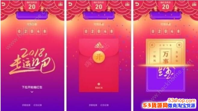 在这段时间内,春节三天红包,即初一到初三(2.16-2.18),活动时间为 09:00-23:50。