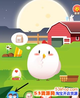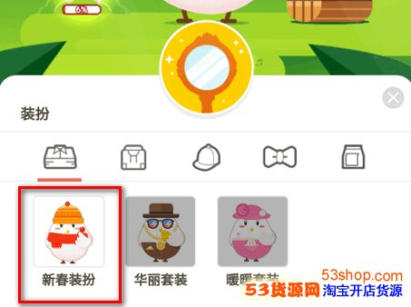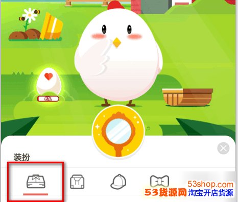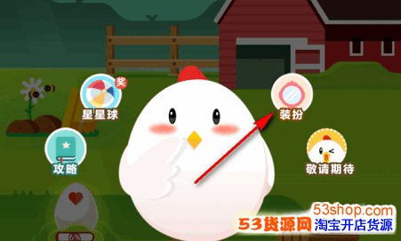 2.点击小鸡后,页面会弹出几个选项,点击【装扮】。