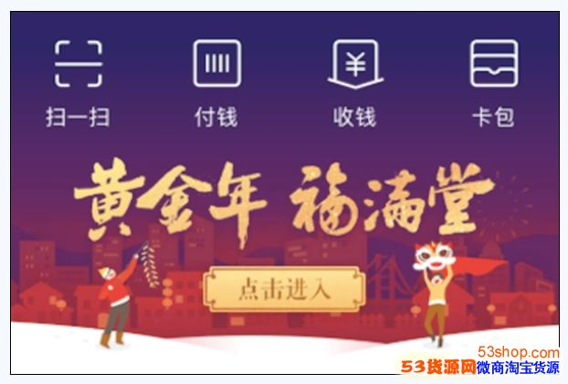 从流出的一张内部灰度测试效果图上可以看到“黄金年、福满堂”的字样,样式有点像现在支付宝首页集五福活动的“在一起、过福年”。