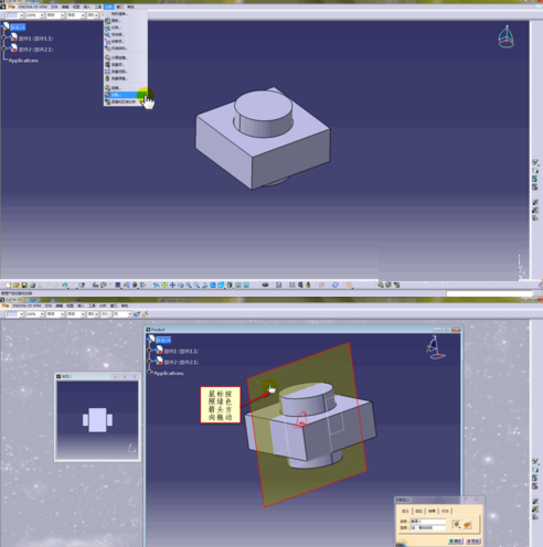 打开Catia,在菜单栏里以此选择>开始机械设计>装配设计,新建一个装配,生成一个如图所示的简单装配体;
