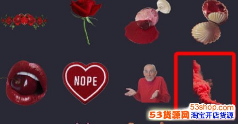 打开软件,点击“更多贴纸”,找到吐红烟的特效;