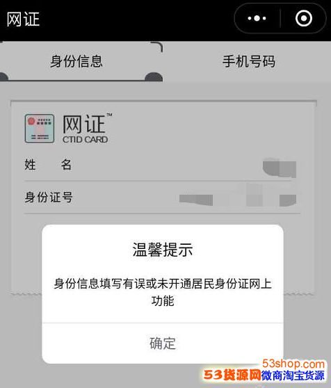 5、输入姓名和身份证号,点击下一步按照提示就可以申请了,但是小编是石家庄的身份证,所以显示了未开通居民身份证网上功能。需要提醒的是广东省内居民通过微信小程序“网证CTID”在线注册申请办理网证,其他省份的用户可以到受理点开通网证功能。