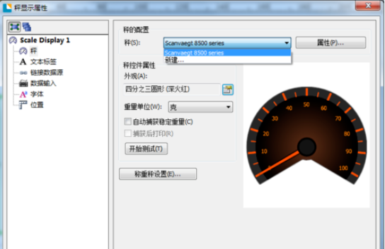 这时双击秤显示控件,以打开“秤显示控件属性”对话框。从导航窗格中选择“秤”,以显示“秤”属性页。