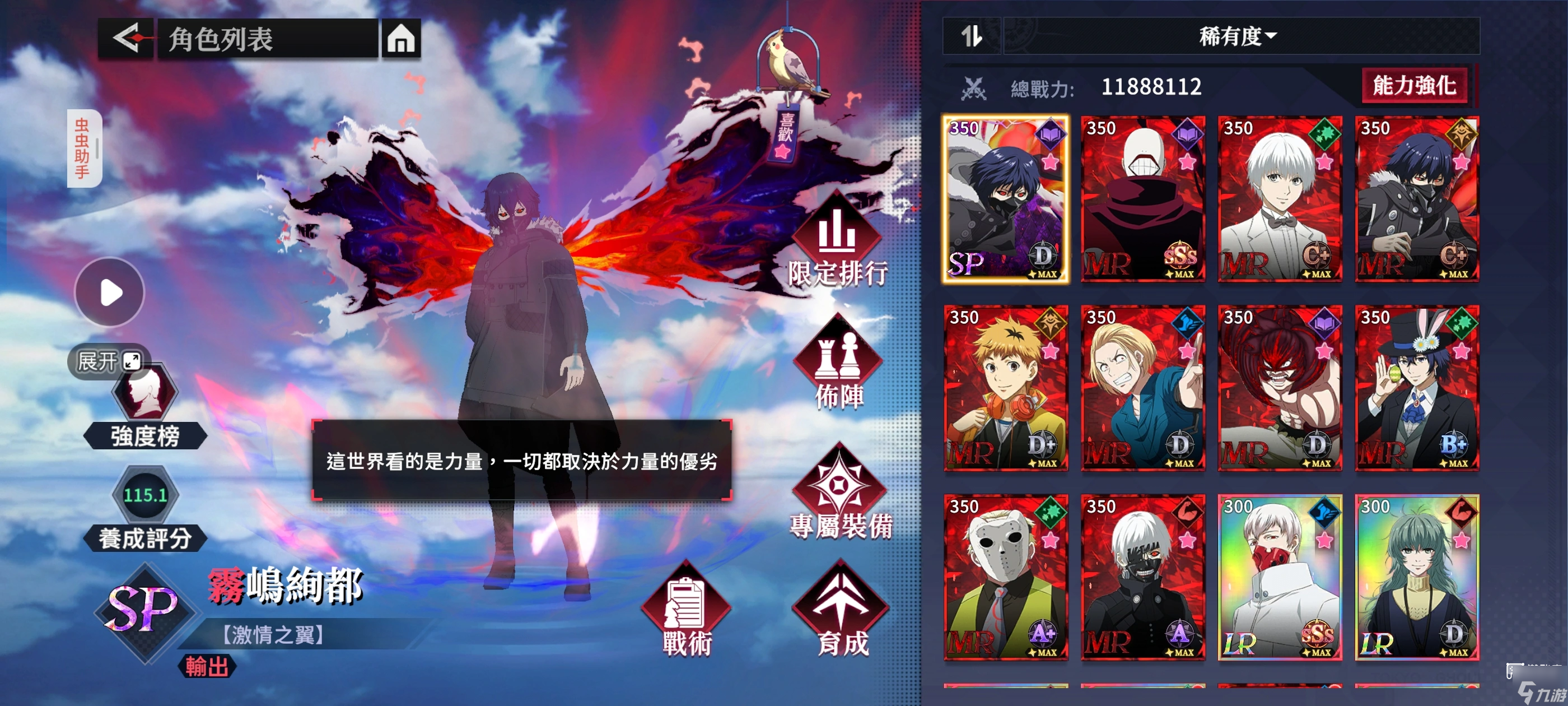 核心:金木研作为主输出,大守八云作为坦克,提供稳定的输出和防御。