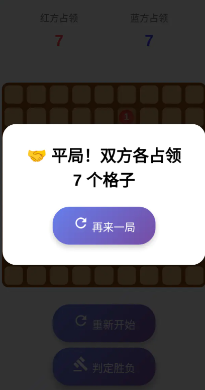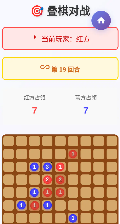游戏以一块棋盘作为载体,红、蓝双方的玩家开始轮流落子,棋子可以单独去下一个,也可以在格子上不断堆叠形成数字层级,最多可堆叠6层,最终以占领格子的数量来决定胜负,若双方占领数相同则变成平局,规则简明能让不同年龄段玩家快速上手。