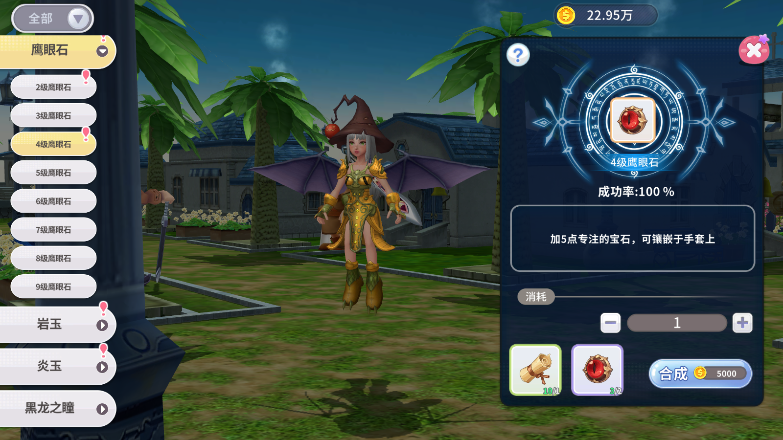 中期阶段:合成 3-4 级宝石,搭配高级精炼石进行装备精炼,提升核心属性;