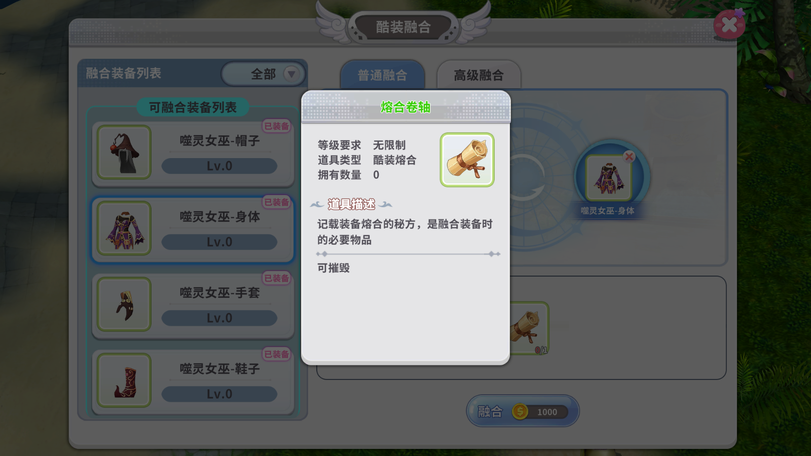 进行融合的条件必备材料:酷装1件、普通装备1 件(建议高属性 / 毕业装备)、催化剂、熔合卷轴、金币。