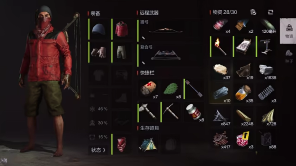 主要的资源准备总共有三类,它们分别是防寒衣物、抗寒属性值加点、补给品,防寒衣物玩家可以通过狩猎狼群,亦或是狩猎棕熊来获得野兽皮毛,野兽皮毛制作的衣物有一定的防寒能力。