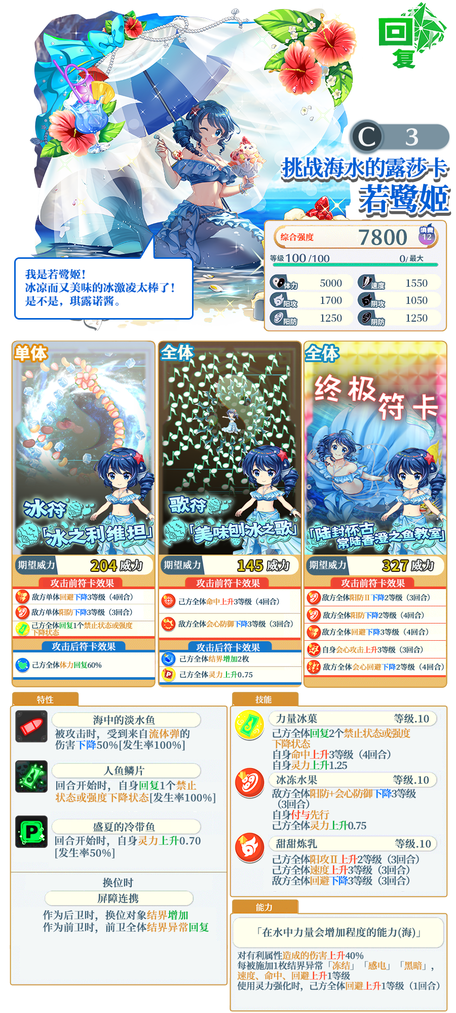 ※「淡水人鱼的海归 EPIC」中需要交换P400才能交换「挑战海水的露莎卡 若鹭姬」。