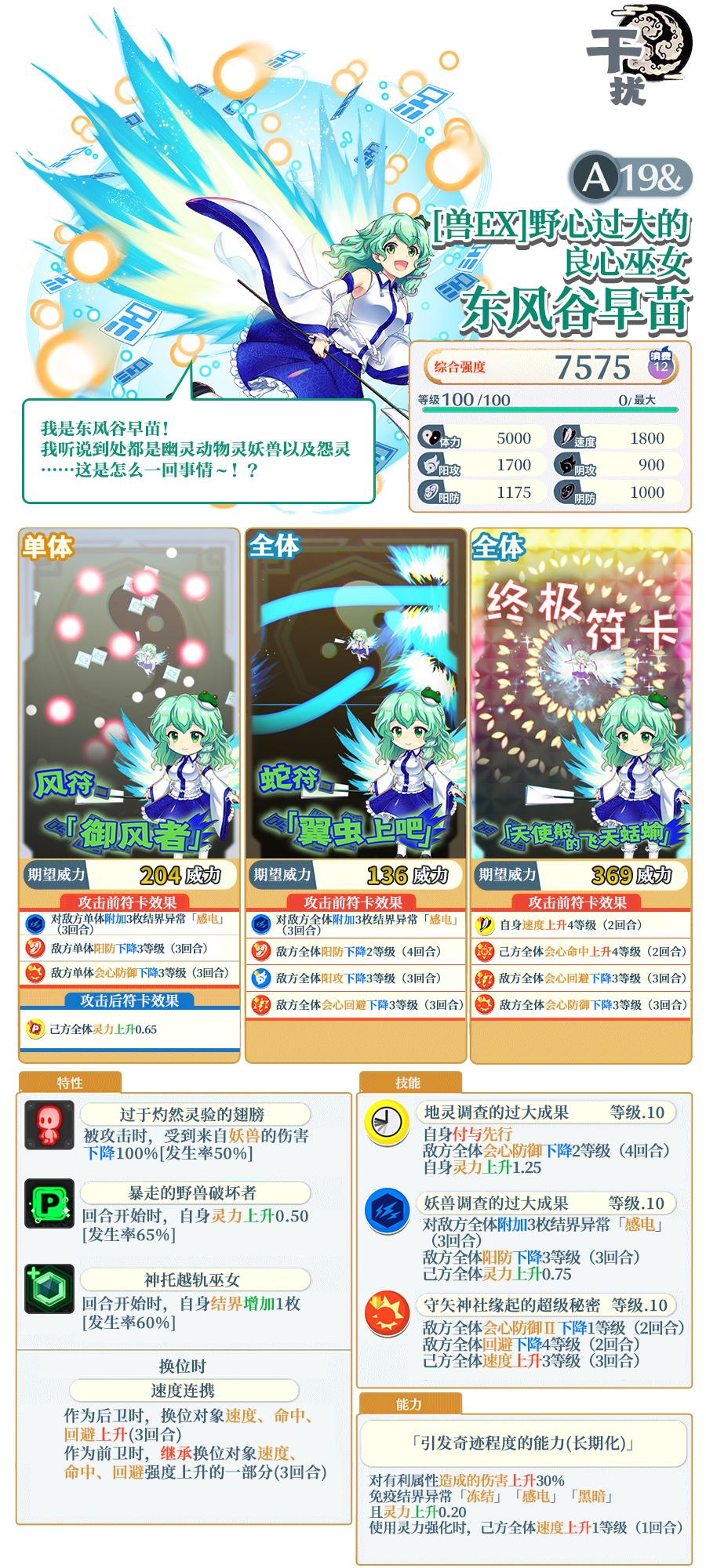 ※「[兽EX]野心过大的良心巫女 东风谷早苗」是仅在EXFES限定祈愿中登场的角色。