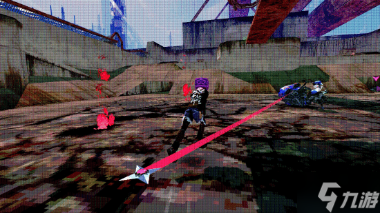 核心玩法融合了悬浮摩托竞速与竞技场乱斗:比赛过程中设有特定的战斗区域,玩家需随时下车,使用铁管、交通标志等武器与对手进行类似《任天堂明星大乱斗》式的肉搏,随后再返回载具继续竞速。