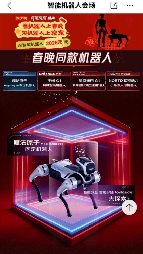 春晚成为人形机器人获得广泛关注的关键窗口。随着宇树科技、松延动力、魔法原子等品牌机器人分别登上春晚舞台,消费者的购买和咨询热情迅速被点燃。数据显示,春晚播出后两小时内,京东机器人搜索量环比增长超300%,客服问询量增长460%,订单量激增150%,覆盖全国上百座城市。与此同时,各类机器人产品也在众多景区、庙会、机场、商场和社区等场景广泛应用,成为春节期间的「科技年味」担当。