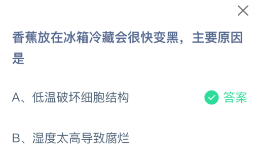 1、题目:香蕉放在冰箱冷藏会很快变黑,主要原因是