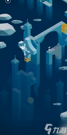 移动图腾方块去压住箭头所指的机关按钮,平台会再次上升。让艾达站到图腾方块上,然后移动方块离开机关,平台会载着你们下降。按照原路返回到初始位置附近,让图腾方块沿特定方向移动并踩下新的机关,会出现一座连接的桥梁。让图腾方块过桥后压住下一个机关,这会使水下的平台下降,从而让第二个图腾方块移动到该平台上。之后松开机关让平台上升,两个图腾方块便会会合,将它们重叠起来。
