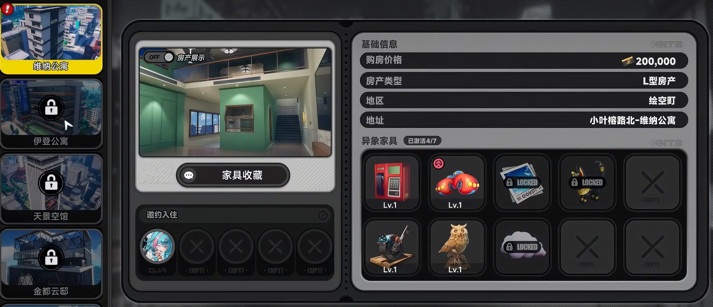 房产系统是都市大亨的核心资产模块。房屋按价格分为多个档位,基础小户型起售价为20万方斯,顶级豪华别墅售价为800万方斯。不同房产不仅影响持有成本,更关联角色入住容量与功能性收益:小户型仅支持1名角色入住;别墅可容纳5名角色,并内置专属副本——该副本在消耗活力值的同时,稳定产出方斯,形成资源再循环闭环。