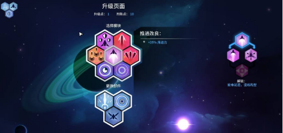 飞船成长体系是本作的核心成长路径,由机身、主武器、副系统等多部件构成,支持高度自由的模组装配逻辑。其中,“超越模块”(又称“虚空模块”)为全游戏中稀有度最高、性能最强的终极模块类型,其获取并非线性解锁,而是依赖特定机制触发:需先在随机模块抽取池中完整解锁全部前置模块,最终才可激活该隐藏模块选项。该过程需玩家完成若干局对战,并在探索中持续积累模块碎片与解锁进度,具备一定随机性与挑战性。