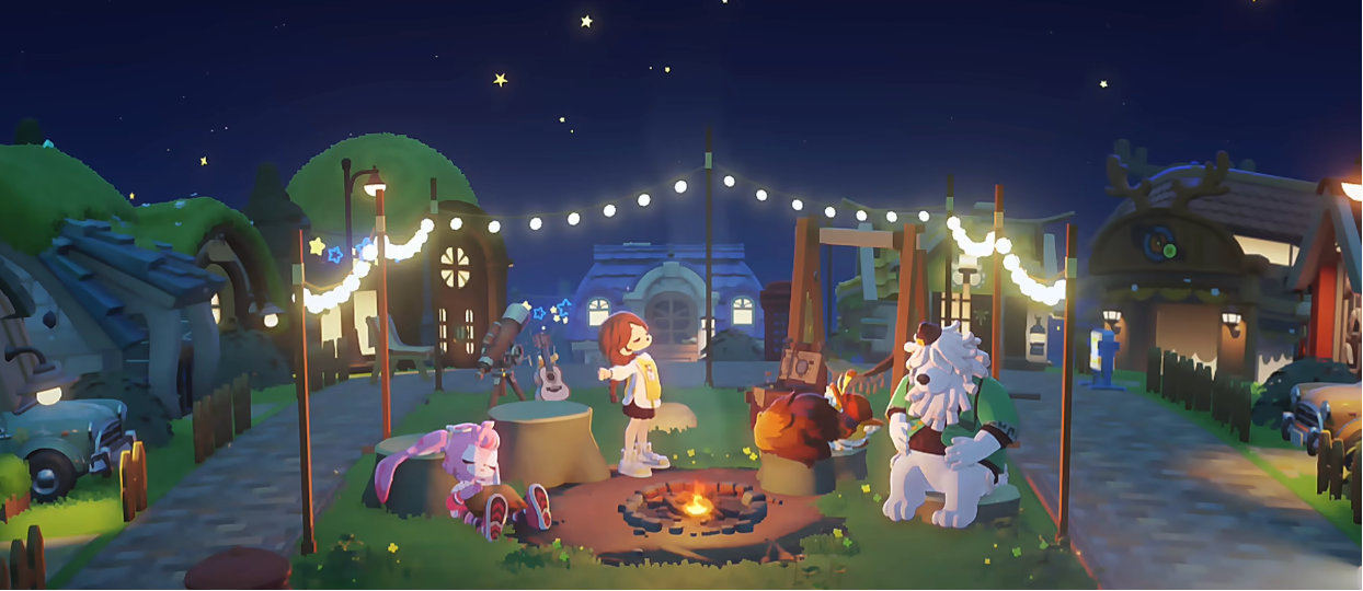 游戏支持12人同屏联机,大家可以一起钓鱼、野营、玩飞行棋。当骰子掷出“6”时,还会绽放出绚丽的烟花。社交并非游戏的附加功能,而是核心体验之一。
