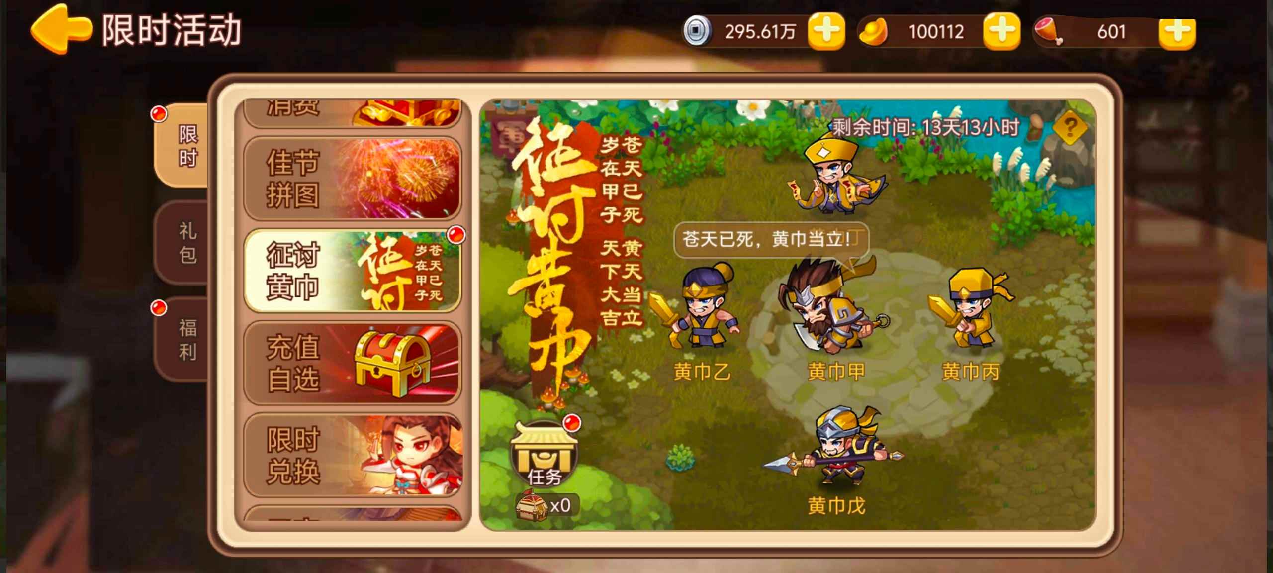 活动内容:活动期间完成任务获得兵营,消耗兵营可征讨黄巾军,获得他身上的战利品。