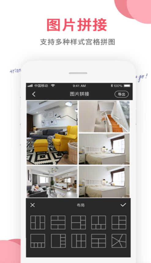 能使用的布局数量多,想怎样拼接全都随心所欲,能拼出两宫格、四宫格这种简单直出的好看照片,也能在自由模式下随意摆放着好片的位置,在拼图的时候还会有专门的网格帮你来构造位置,不满意的话还可以在他们的模板之中看看有没有心仪内容。
