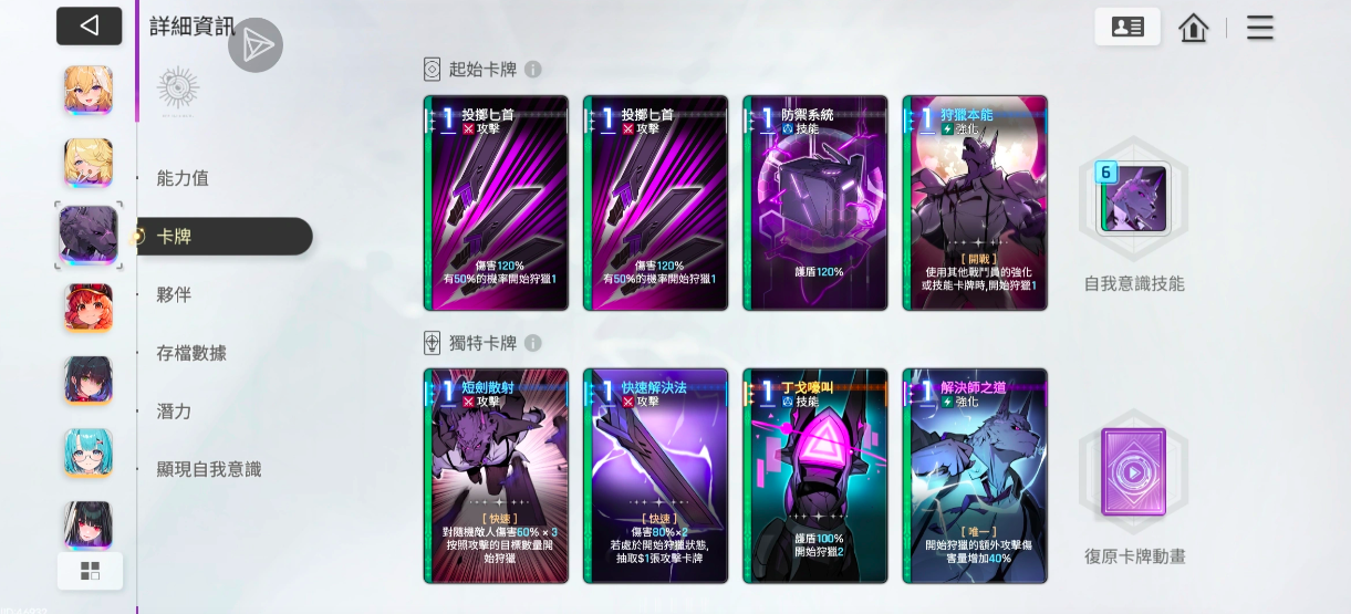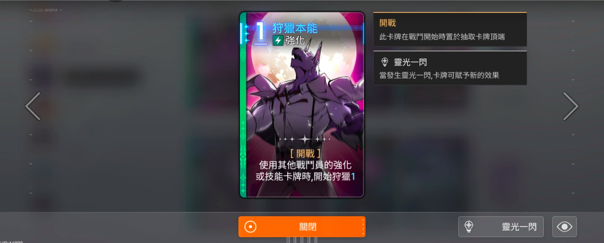 而在战场当中,角色的主动技能和被动技能可以进入到高效联动状态,在每一次技能命中目标后,可成功触发额外伤害的反馈;尤其是对一些单体攻击力较强的卡牌高度适配,在使用”狩猎本能这一卡牌时,可将位移速度同步提升,完成追击响应效率的提高,使每一次的技能衔接能够更加紧凑,在伤害系数释放的过程中也能高度集中,在实战过程当中实现事半功倍。
