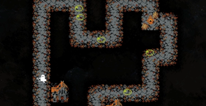 当然也有另一个思路,就是直接不让宫殿刷出来。营火旁边那几个格子,是可以刷宫殿的,只要提前把这些格子占满,宫殿就没地方生成了。蜘蛛茧放在道路两侧是个不错的选择,这样卡住位置之后,BOSS的强度基本上就锁死了,打起来会轻松很多。